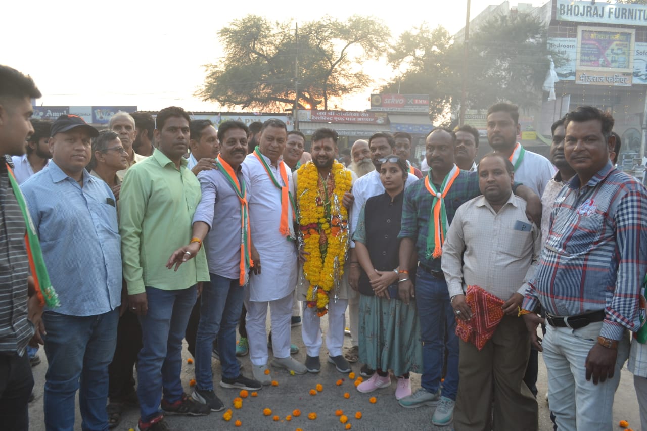 कांग्रेस के नीलू अग्रवाल ने बताया कि “दादा” के समर्थन में मयंक जाट द्वारा वार्ड नंबर 7 व 8 में जनसंपर्क किया गया। जनता से अनुरोध किया कि आप दादा को वोट अवश्य देवे आपकी सारी समस्याओं का हल मैं दादा से निश्चित ही करवाऊंगा। सायं 4:30 बजे जनसंपर्क अलकापुरी से प्रारंभ होकर साक्षी पेट्रोल पंप पर समापन किया गया। अलकापुरी चौराहे पर जिला अध्यक्ष मयंक जाट का शाल श्रीफल से सम्मान किया गया। यहां अपना रेस्टोरेंट में नन्ही बच्ची द्वारा विजय तिलक लगाकर आशीर्वाद दिया गया ।