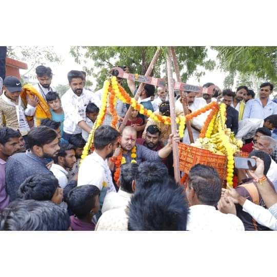 सुबह जनसंपर्क शुरू करने से पहले रूपनगर फंटे पर स्थित हनुमान जी के दर्शन कर मंगल दास जी महाराज का आशीर्वाद लिया।