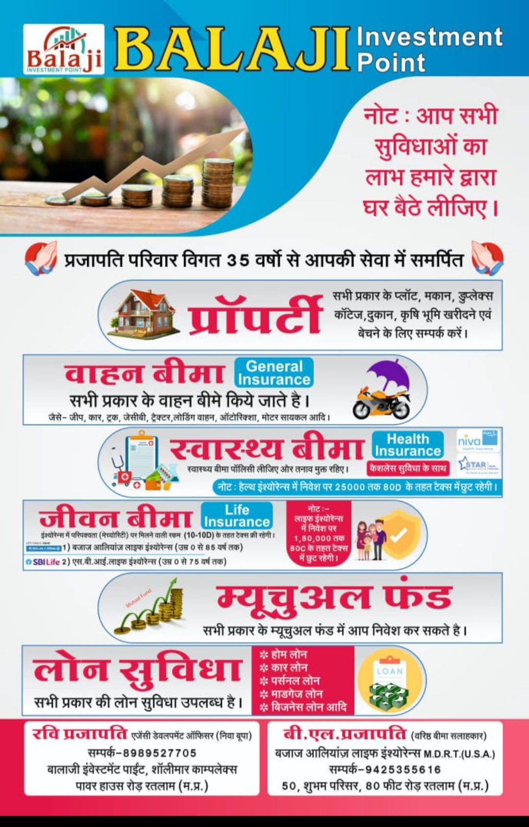 बालाजी इनवेस्टमेंट प्वाइंट का मुख्य कार्यलय श ह र के पॉवर हाउस रोड स्थित है जो की आपको घर बैठे ही सब सुविधा देने वाला रतलाम का पहला कार्यलय होगा …..
