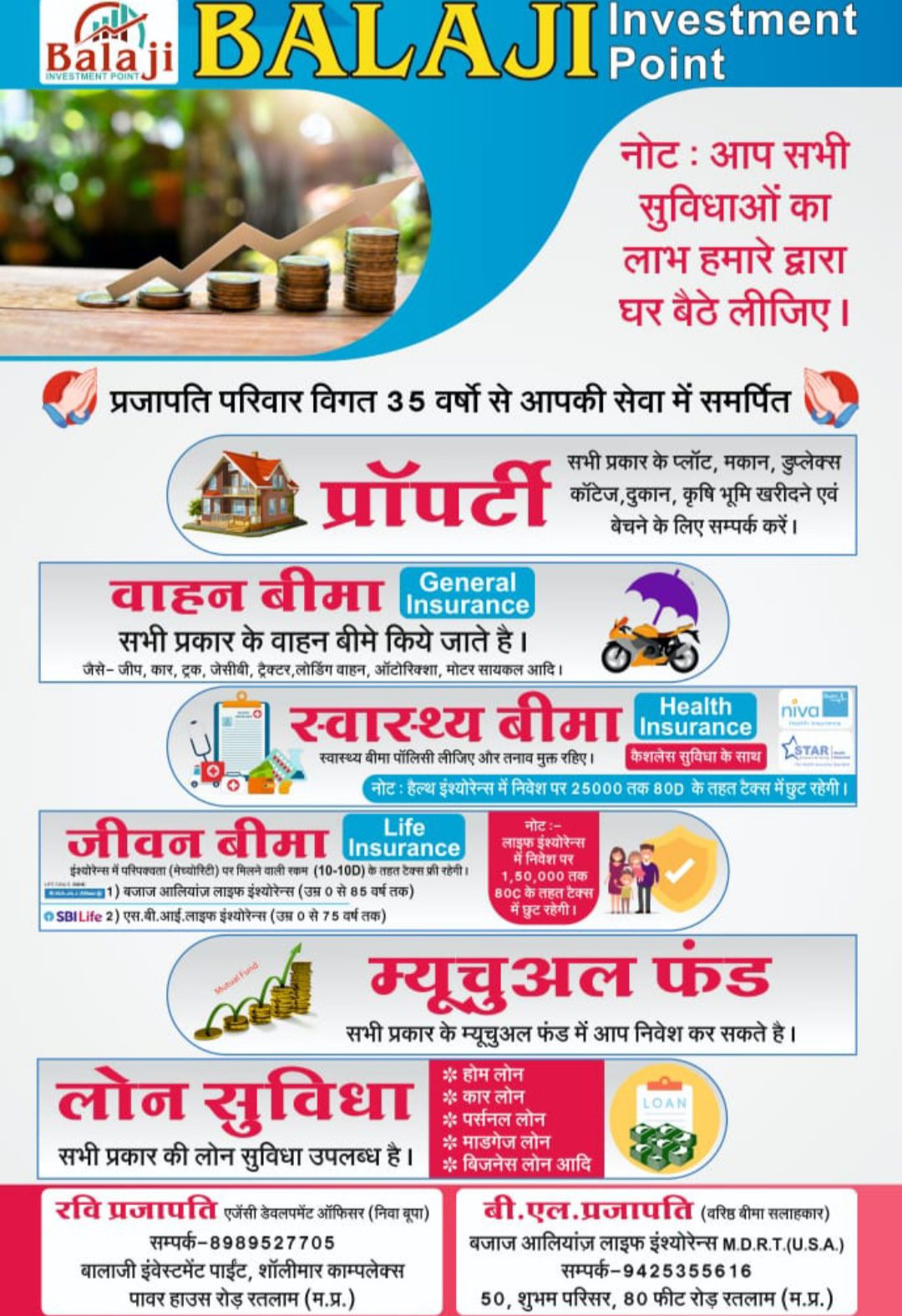 बालाजी इनवेस्टमेंट प्वाइंट का मुख्य कार्यलय श ह र के पॉवर हाउस रोड शालीमार कॉम्प्लेक्स में स्थित है जो की आपको घर बैठे ही सब सुविधा देने वाला रतलाम का पहला कार्यलय होगा …..