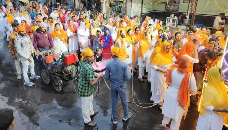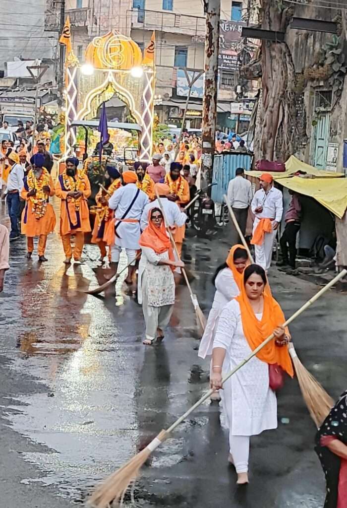 शाम को न्यू रोड स्थित श्री गुरु सिंह सभा से नगर किर्तन का आयोजन किया गया ।आगे आगे पंज प्यारे चल रहे थे समाज की महिलाएं हाथ में झाड़ू लेकर स्वच्छ जल से सड़क को साफ कर रही थी गुरु ग्रंथ साहब पालकी में विराजे थे वही फिजां में गुरुवाणी गूंज रही थी। न्यू रोड स्थित गुरु सिंघ सभा पर आकर्षक रोशनी की गई थी सैकड़ो समाज जन इस दौरान उपस्थित थे