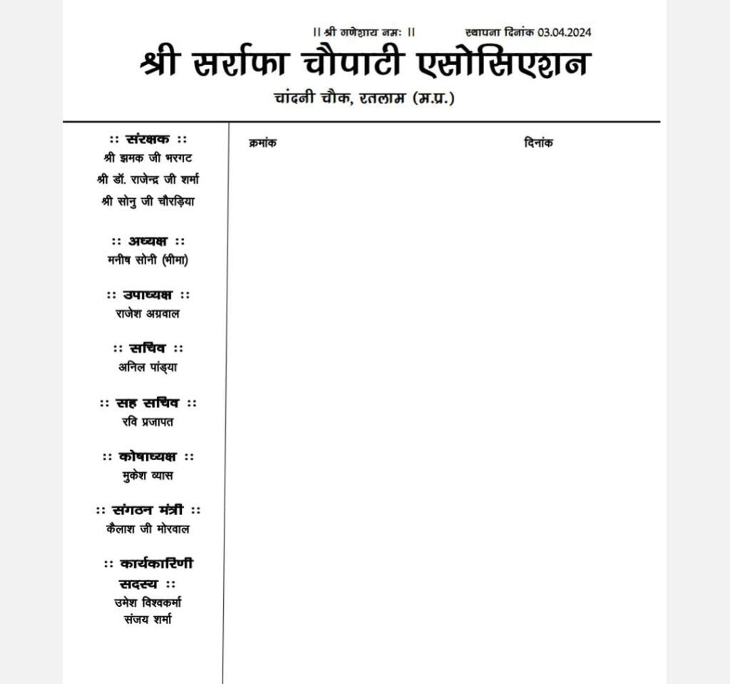 रतलाम – : श ह र के चांदनी चौक स्थित सराफा व्यापारियों द्वारा बनाए गए सराफा एसोसिएशन की तर्ज पर सराफा चौपाटी एसोसिएशन का भी अब गठन किया गया है ,