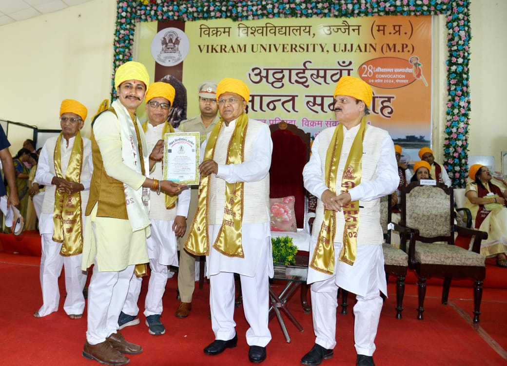 , बताया जाता है की 09 अप्रेल गुड़ी पड़वा पर विक्रम विश्वविद्यालय, उज्जैन के 28 वे दीक्षांत पर आयोजित समारोह के अवसर पर समारोह के अध्यक्ष महामहिम राज्यपाल एवं कुलाधिपति मंगुभाई पटेल मुख्य अतिथि महानिदेशक मौसम विज्ञान विभाग, पृथ्वी विज्ञान मंत्रालय, भारत सरकार, नई दिल्ली, डॉ. मृत्युंजय महापात्र द्वारा कॉमर्स कॉलेज के प्रो हिमांशु बैरागी पिता कृष्ण दास बैरागी को पी.एच.डी. की उपाधि से सम्मानित किया गया l