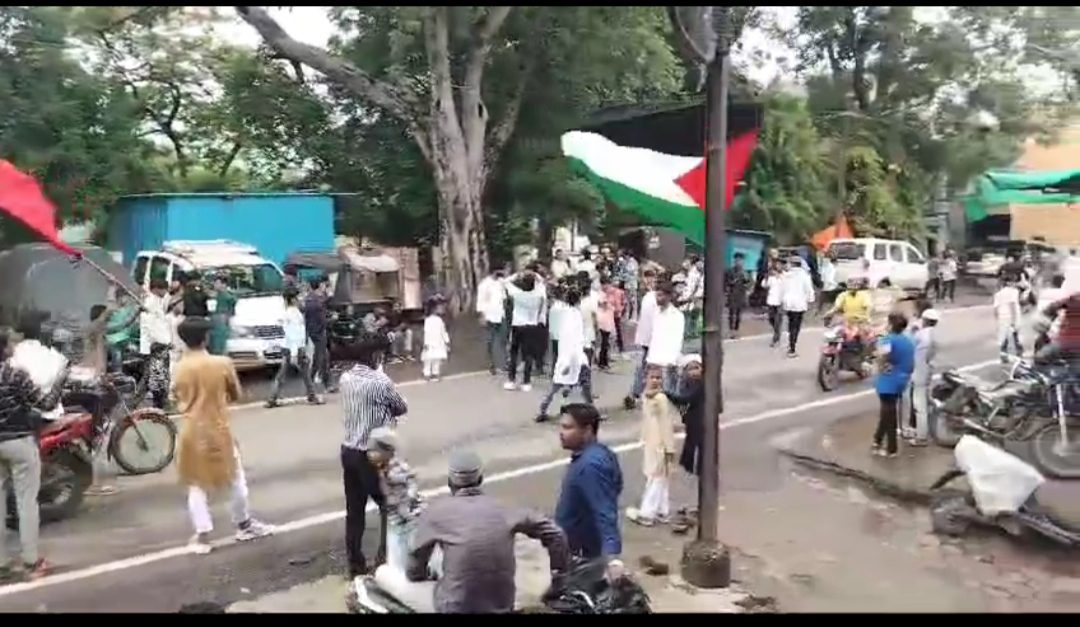उक्त घटना में सामने आई वीडियो, जिसमे कुछ युवक फिलीस्तीन का झंडा फहराते हुए निकल रहे है