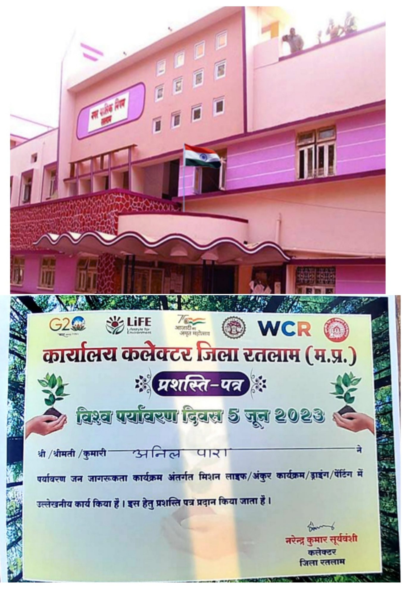 सम्मान की आड में भ्रष्टाचार को दबाने का प्रयास , प्रशस्ति पत्र लेते हुआ भ्रष्ट अफसर अनिल पारा …